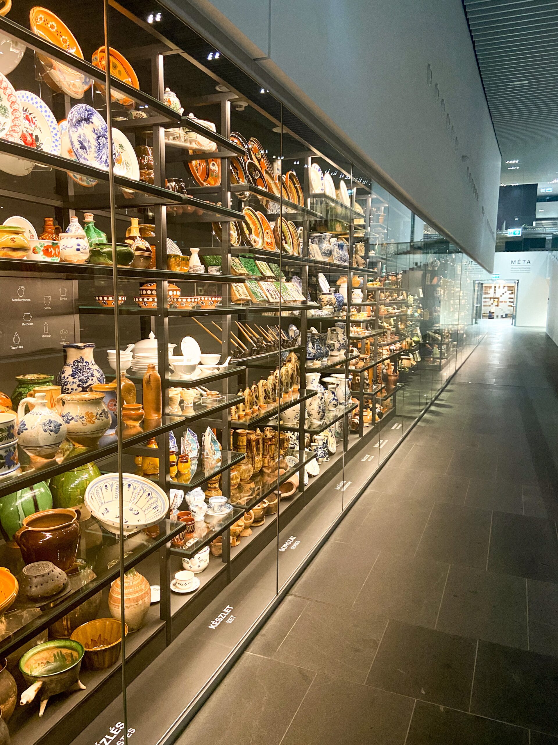 Pe holuri sunt niște mega vitrine în care se află ceramică din toată lumea – am înțeles că au o colecție destul de impresionantă. Expoziția de ceramică este în două părți, care cică simbolizează cumva modul în care ne uităm la expoziție. Pe partea stângă este expoziția ”rațională”, organizată, care împarte ceramica pe locuri de proveniență, culturi, regiuni. În partea dreaptă este împărțirea ”emoțională” a ceramicii după diferite asocieri – culoare, volum, modul sau ocazia în care era folosită etc.